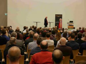 Es war ein unerwartet (sehr) gut besuchter Börsentag in Frankfurt am 29. Februar 2020. Der Vortragssaal war übervoll. Die Menschen standen und saßen sogar in den Gängen und lauschten dem Vortrag von Heiko Thieme. Das Corona-Virus ist zwar in den Depots angekommen, aber nicht auf dem Börsentag. Aus Angst vor dem Virus hatten allerdings 5 ausstellende Banken und Verlage den Börsentag abgesagt. Eine Bank hatte am Freitag den Stand noch aufgebaut, der war aber am Samstagmorgen plötzlich verschwunden. Die Besucher selbst waren sehr entspannt, zum einem beim persönlichen Umgang mit anderen Besuchern, viele grüßten sich von der Ferne und schüttelten keine Hände. Zum anderen, waren sie doch entspannter, trotz der gefallenen Börsen. So nach dem Motto: Hände waschen und durchhalten! Heiko Thieme unterhielt sich auch mit zahlreichen Clubmitgliedern in persönlichen Gesprächen am Rande des Börsentages. In dieser Clubausgabe hören Sie Ausschnitte der Frage- und Antwortrunde nach dem Vortrag und als zweite Aufnahme einen Mitschnitt des Vortrages.